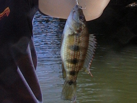 西アフリカ原産。非常に攻撃的。20cm程度まで成長。ネオンをあてるとヒレの縁の青がとてもきれい。昔は観賞魚として人気が高かった。ピーコックバスの餌釣りには最適。